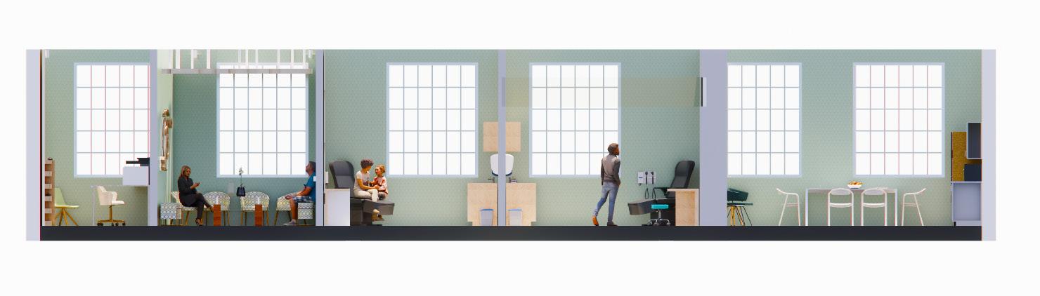This project is a Small Medical Office, specifically an audiologist office, which can serve all age demographics at this clinic. Through extensive research on the ergonomics, standards, guidelines and evidence based design on an audiologist office and design, the design was created. The Small Medical Office project is for two clients who are physicians who have partnered up to own their own medical office which is located on the second floor of 709715 North 2nd Street, Philadelphia, PA. Using contemporary forms, colors, lighting, and materials, they want a space designed that provides the feeling of a calm, comfortable, and a positive experience for all guests.