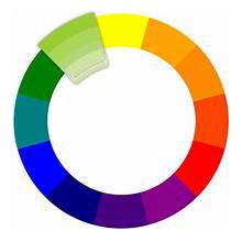 The color scheme is a monochromatic green color scheme with the use of neutral colors of white, cream, and light grey. The addition of light wood tones in the spaace compliments the light green color scheme and adds warmth to the space.