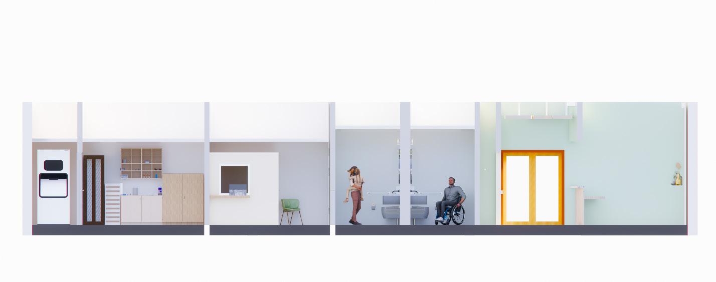 A patient’s hearing ability is tested through an audiometer test. The results are shapes that demonstrates the hearing ability. The function of this space incorporates the shapes as a way to guide the patient through the journey of an audiologist visit.