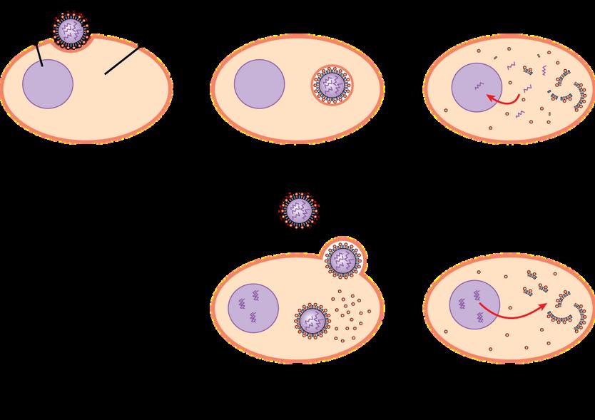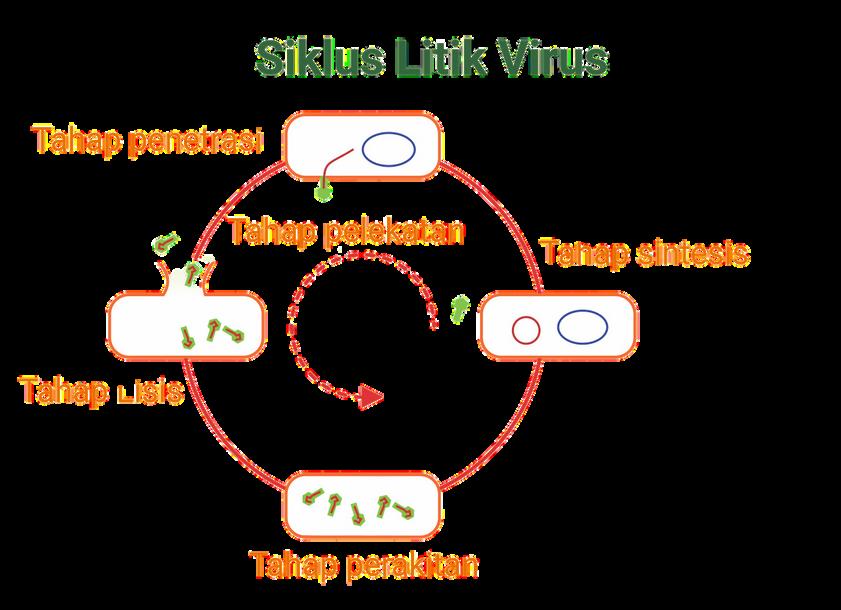 Siklus reproduksi atau replikasi genom virus, yang kemudian dapat menyebabkan kematian bagi sel inang tempat virus
