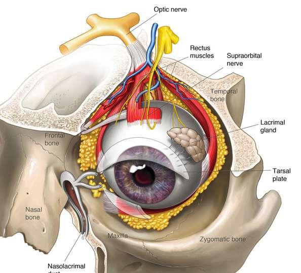 Bola mata terbagi menjadi dua bagian, di mana masing-masing terisi oleh cairan: