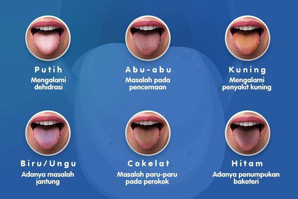 Tubuh manusia itu unik Ketika ada masalah, ia bisa memberikan sinyal atau tanda Namun, sering kali sinyal atau tanda tersebut tidak disadari hingga benar benar muncul gejala berat. Misalnya saja warna lidah, yang sebenarnya bisa menggambarkan kondisi kesehatan seseorang. Sekarang, paham kan mengapa dokter sering meminta pasien menjulurkan lidah ketika melakukan pemeriksaan? Lidah yang sehat memiliki ciri berwarna merah muda, dengan bintikbintik kecil bernama papila di permukaannya. Namun, lidah bisa mengalami perubahan warna akibat kondisi tertentu.