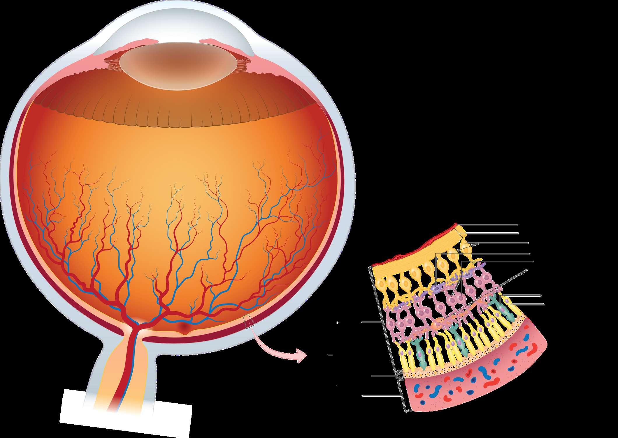 Lapisan jaringan peka cahaya yang terletak di bagian belakang bola mata; berfungsi mengirimkan pesan visual melalui saraf optikus ke otak. Sel-sel khusus ini terdiri dari sel batang dan sel kerucut. Sel batang pada retina berfungsi untuk melihat cahaya yang redup, sedangkan sel kerucut berperan dalam melihat cahaya terang dan warna.