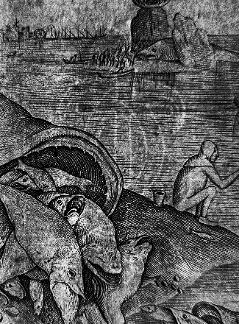 Manfred Sellink points out that "the metaphor 'the big fish eat the little fish', which illustrates the enrichment of the powerful at the expense of the poor, spread throughout Europe from antiquity and became very popular in Antwerp, a city of printers, precisely in the 16th century." He points out, however, that in Bruegel's drawing "the largest and most gluttonous fish is thrown back on the shore and disemboweled, so that all the swallowed fish come out of his body and the result of his greed is destroyed." (Manfred Sellink, Bruegel, lʹ œuvre complet - peintures, dessins, gravures, 2007, p. 88, translated by us).