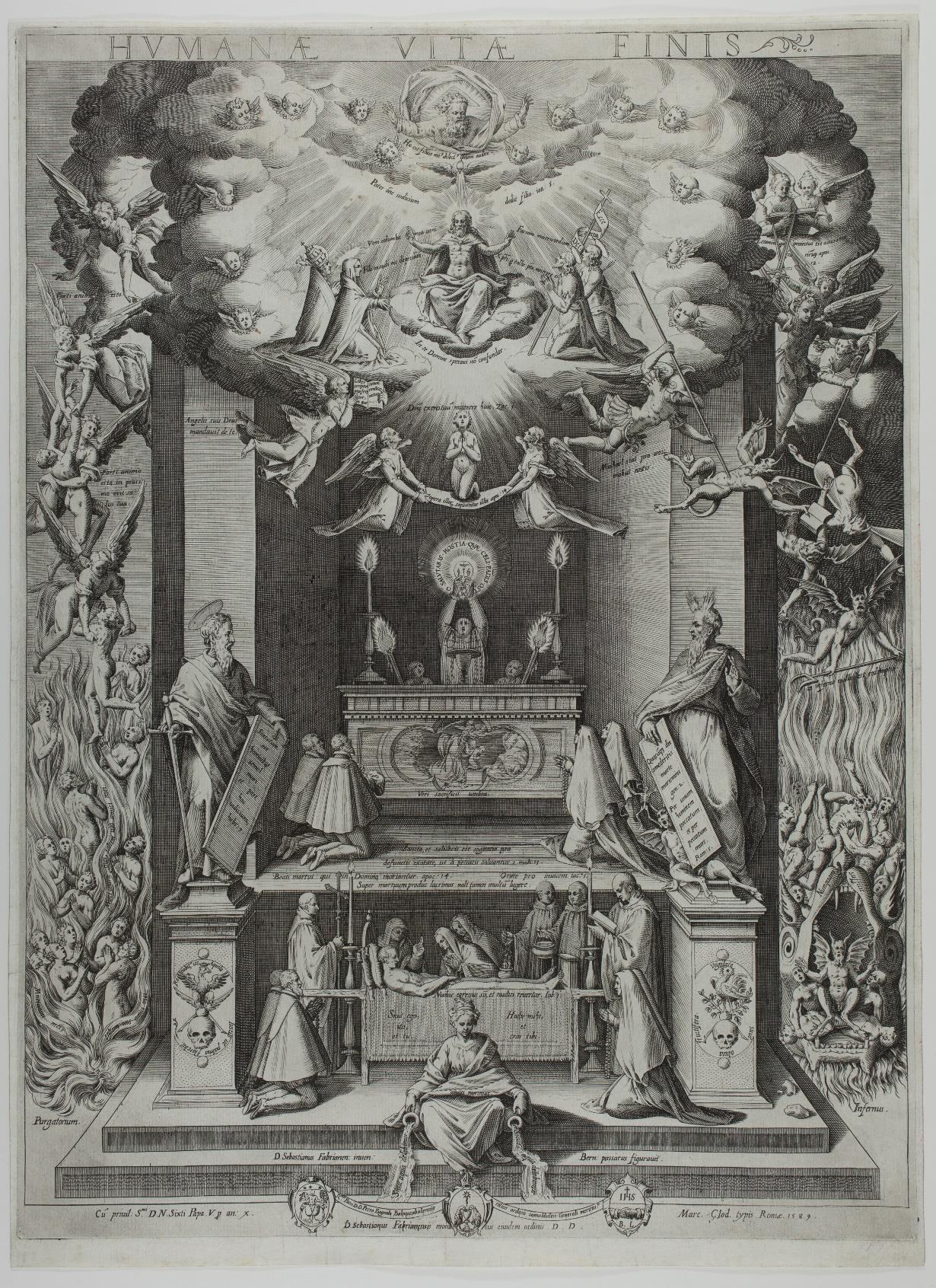 Humanae Vitae Finis bears two authors' names, that of Sebastianus Fabrianensis (D. Sebastianus Fabrianen: inven:) and that of Bernardino Passeri (Bern: passarus figuravit).