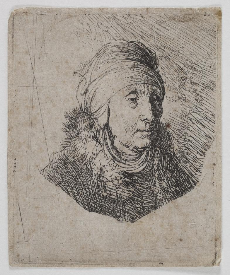 Very rare print (Usticke RR+). Only two impressions of the 1st state before reduction of the copperplate on the right are known (Rijksmuseum, British Museum). In some impressions of the 2nd state the lower part left blank by Rembrandt has been trimmed.