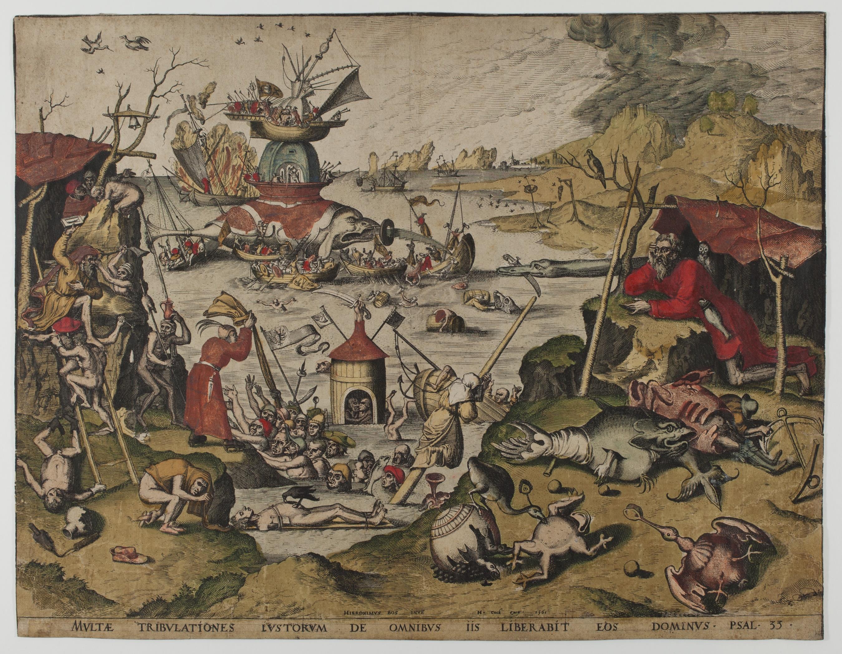 We also present a very rare heightened color impression of The Temptation of Saint Anthony (1561) engraved by Johannes and Lucas van DOETECUM after a drawing attributed to Hieronymus BOSCH.
