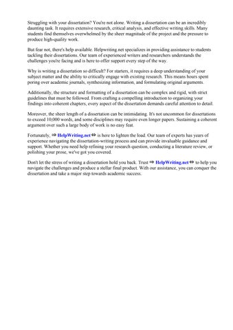 So why struggle with your dissertation alone when you can get expert help from ⇒ HelpWriting.net ⇔? Contact us today to learn more about our dissertation writing services and take the first step towards academic success.