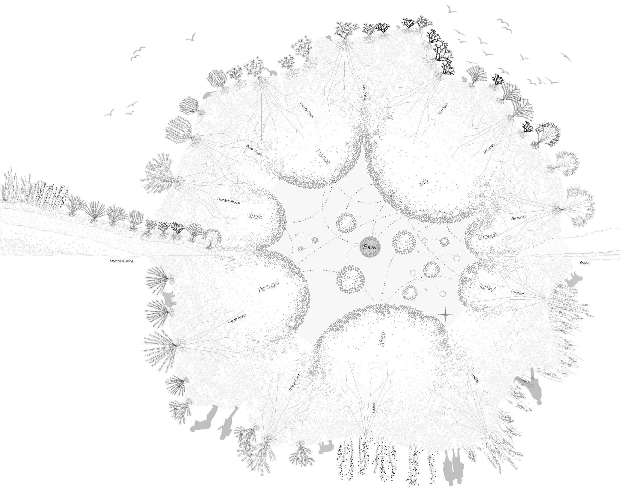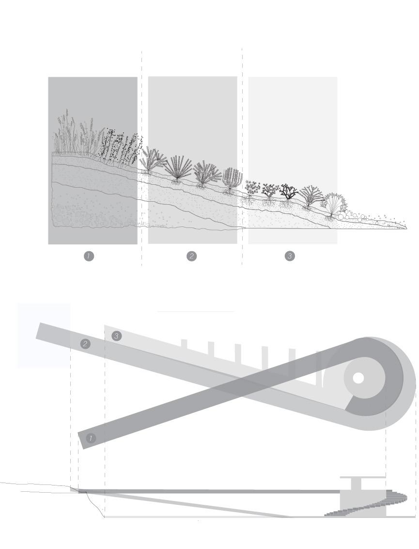 Our project began with an exploration of Elba, focusing on the island’s vegetation, particularly the macchia Mediterranea. This study revealed that the macchia was threatened by tourism, wildlife, and wildfires. We sought to reclaim the site using this vegetation while mimicking the macchia’s tiered systems along the coastline. These tiers informed our design, with the top layer representing active life, the middle layer bridging connections, and the bottom layer engaging with the water. This concept guided both the program and the form of the design.