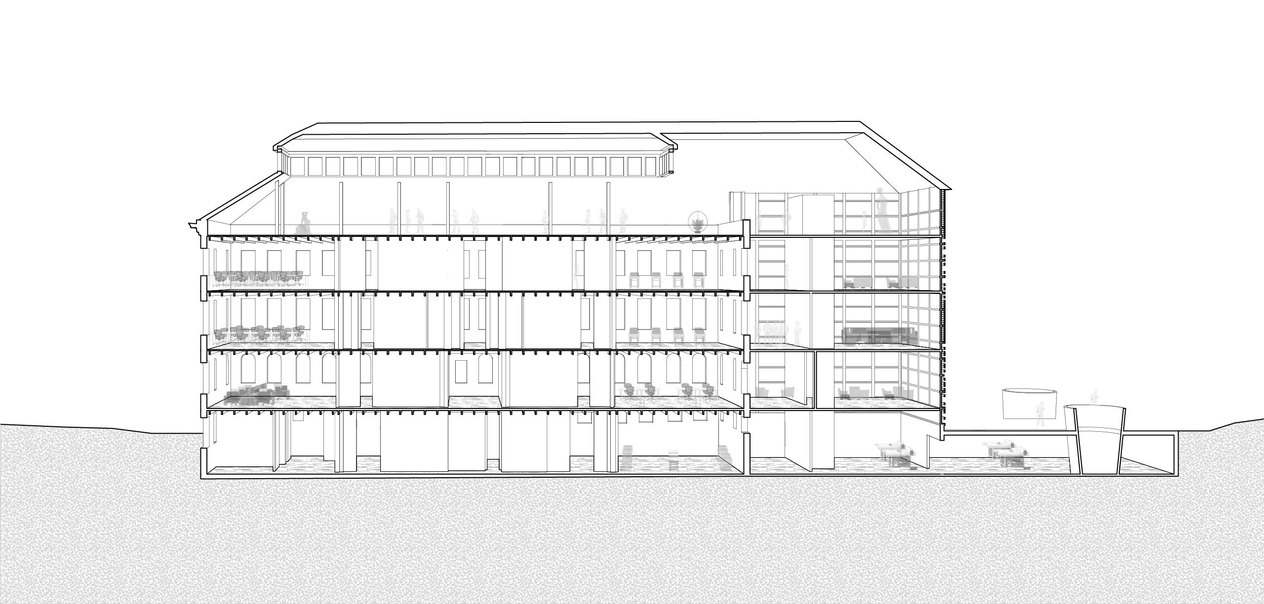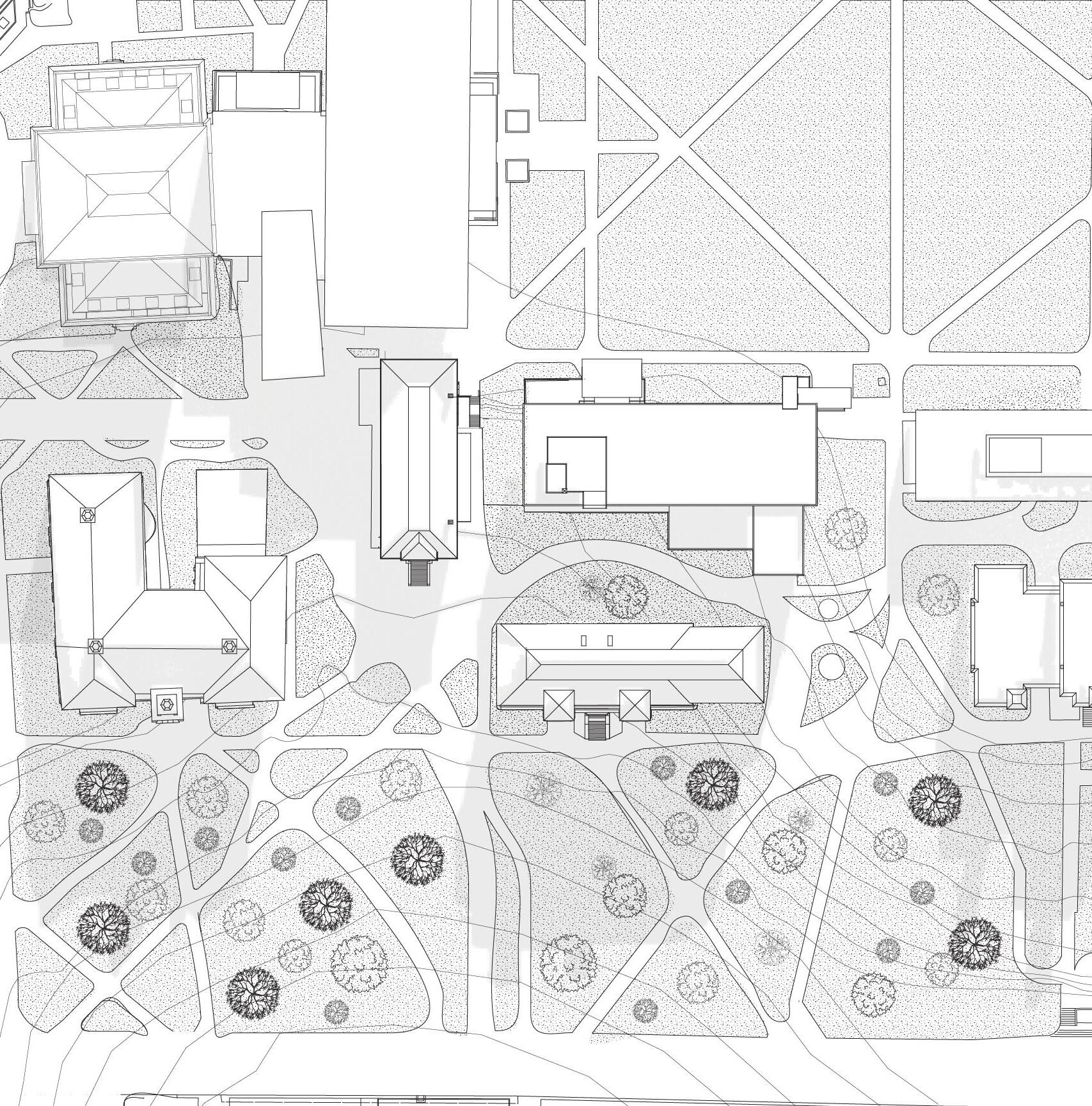 Built in 1902, Smith Hall is a historic building on Syracuse University’s campus, currently housing parts of the Visual and Performing Arts (VPA) programs, the School of Architecture, and general backfill spaces. This proposed addition transforms Smith Hall into a hub for interdisciplinary collaboration, connecting the VPA, the School of Architecture, and the iSchool. By extending the building underground and redesigning the surrounding landscape, the project creates a vibrant mini-campus that encourages interaction between these programs while enhancing the functionality of Smith Hall.