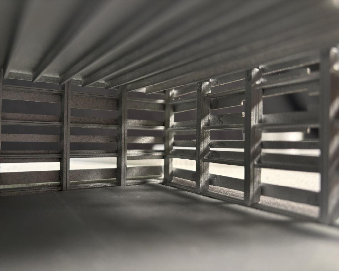 The final design centers around a terraced layout, with a central terrace surrounded by both inner and outer loops. These loops were envisioned to accommodate different stages of the program, creating a clear organizational structure that facilitated the separation and sequencing of functions. The cascading nature of the form enabled a seamless integration of gravity into the production process, allowing materials to flow naturally from one stage to the next.