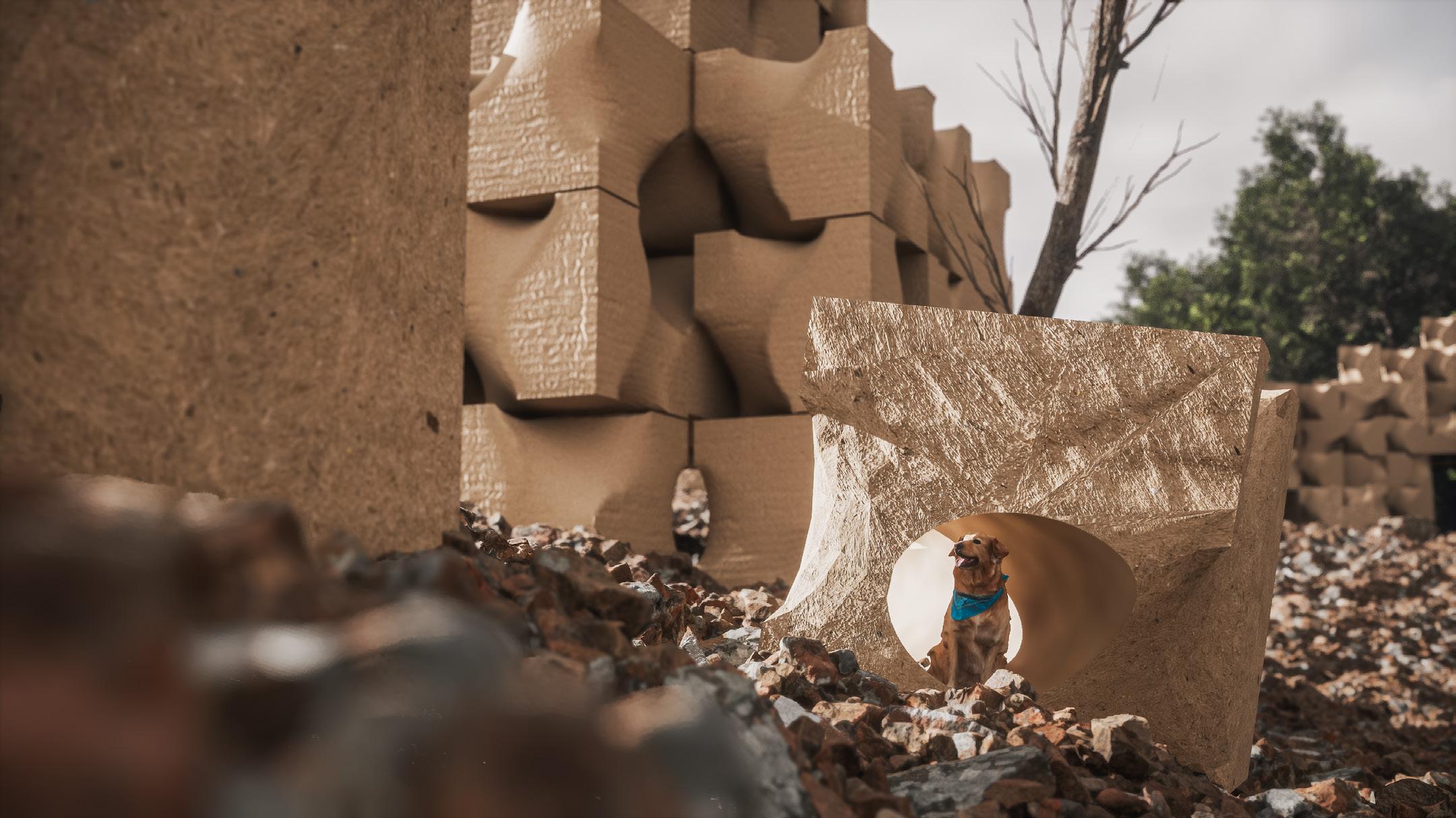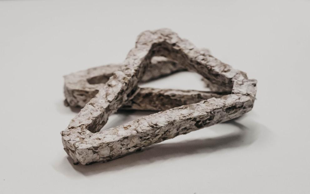 Paper pulp can be used in a sustainable, economical, structural, and aesthetic manner to provide a warm, comfortable, and sustainable rest stop at the edge of Georgian Bay.