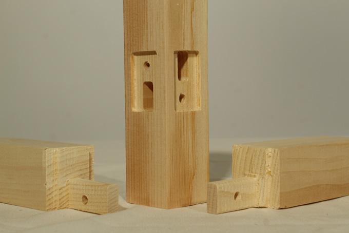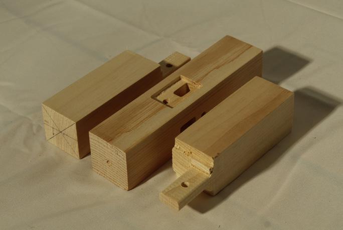 小根ほぞ差し 割り楔締め 小根ほぞ差し 込み栓打ち haunched mortise and split wedge tightening, haunched mortise and plugging