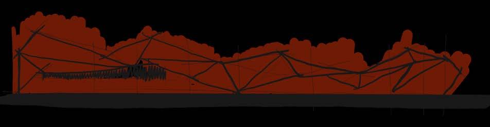 The skin of The Expedition is made up of corten steel panels, these panels are attached to either a space frame or a rod formwork. The formwork is to be hidden between the panels therefore panels are on both sides of the formwork. The diagram below shows the ageing of these panels over time. This material was chosen
