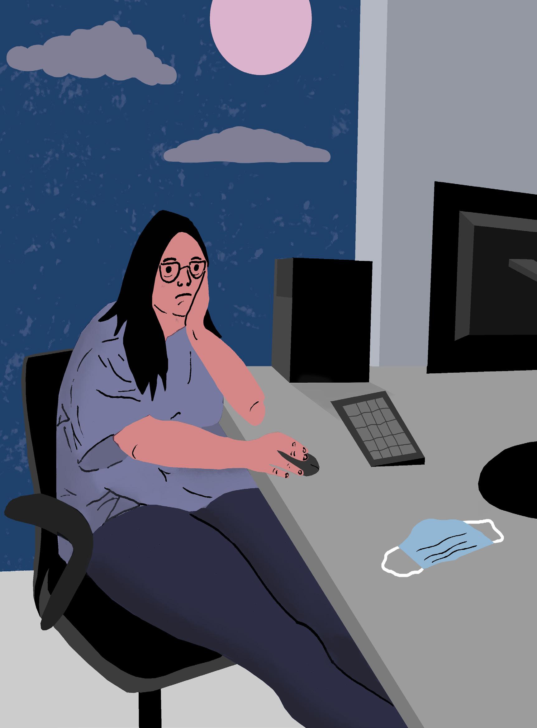 The goal of this project was to create a self portrait in the style of a famous artist. I chose Paul Blow. I chose to draw myself working on homework in Discovery Hall, as that is what I spend most of my time doing!