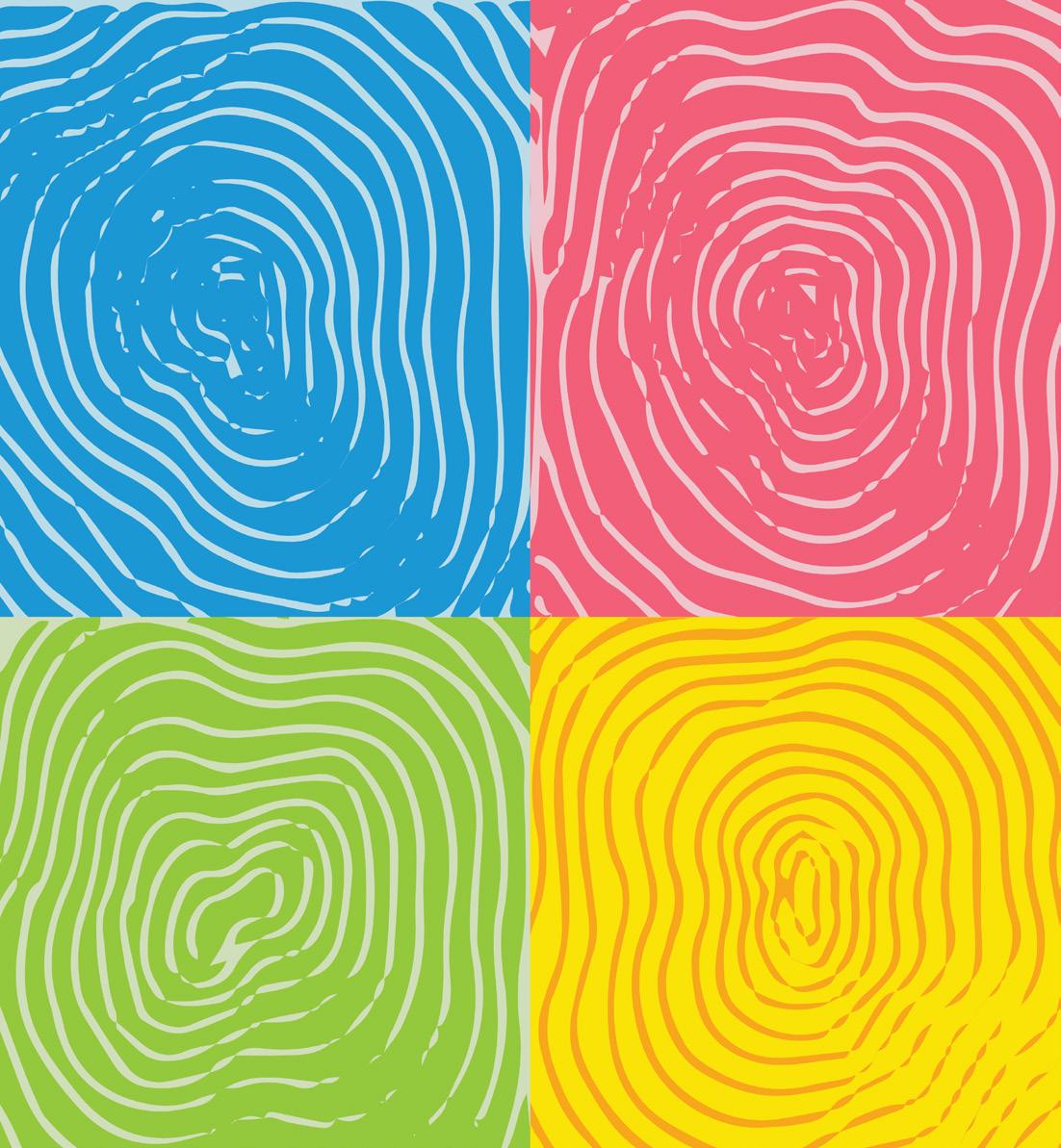 This textile was inspired by the human fingerprint. I began with hand sketches exploring different ways to arrage the pattern. I then took it into Illustrator and added color.