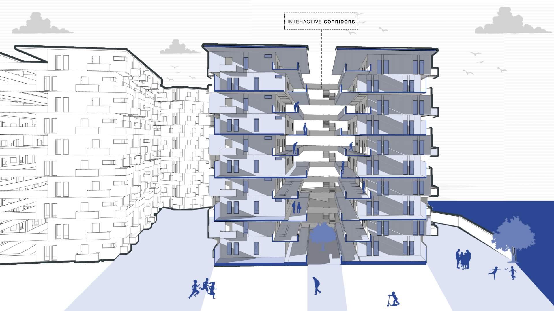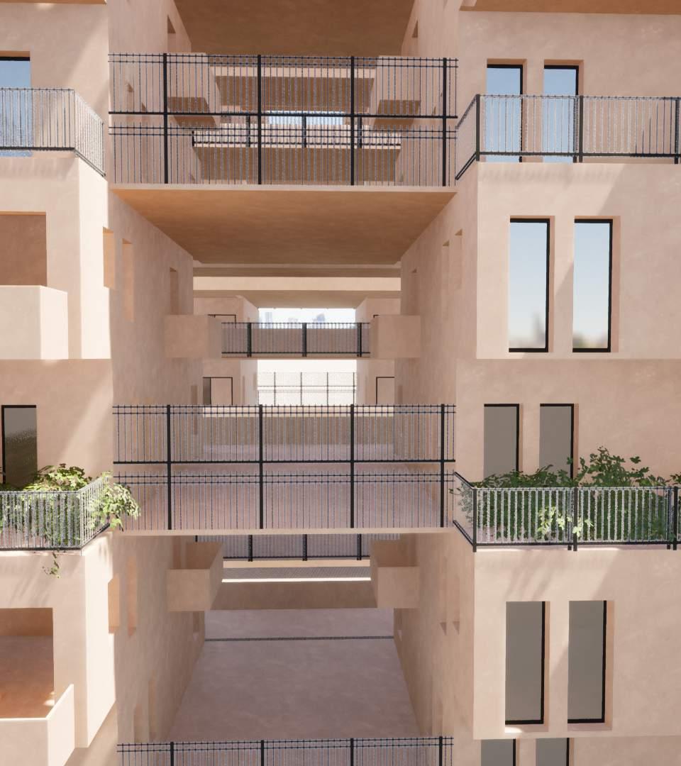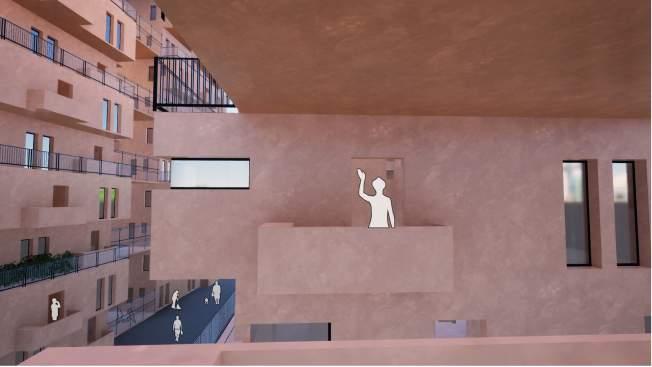 Social space bounded by two dwelling units - introducing a social void in - between two dwelling units in order to ensure a communication between the dwelling units.