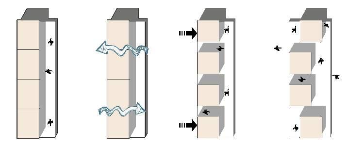 Moving the upper unit backward providing a interacting corridor between two floors.