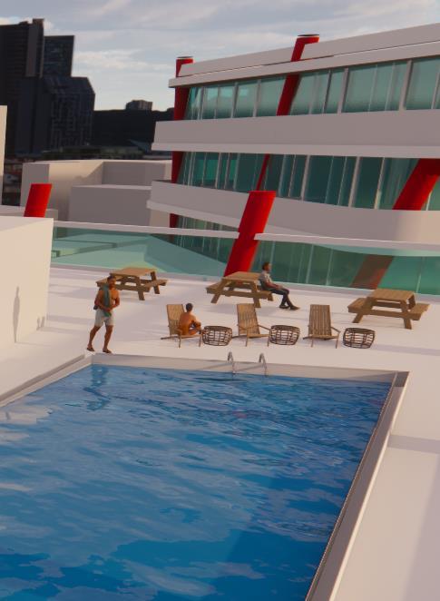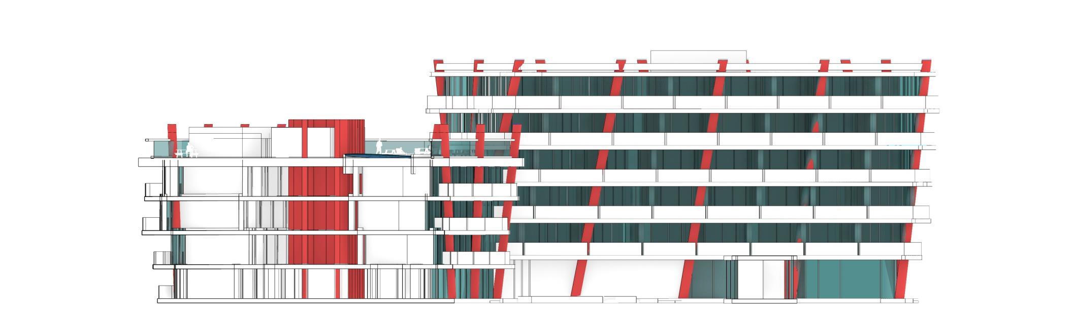 In the part of interior space and shared space, the design is aiming to achieve spaces that allow users to get close to nature, get view of the river and surrounding city while having them as their personal space as well. In result, every rooms has access to private balcony, and most of the shared space has balcony which allow users to see surrounding view.