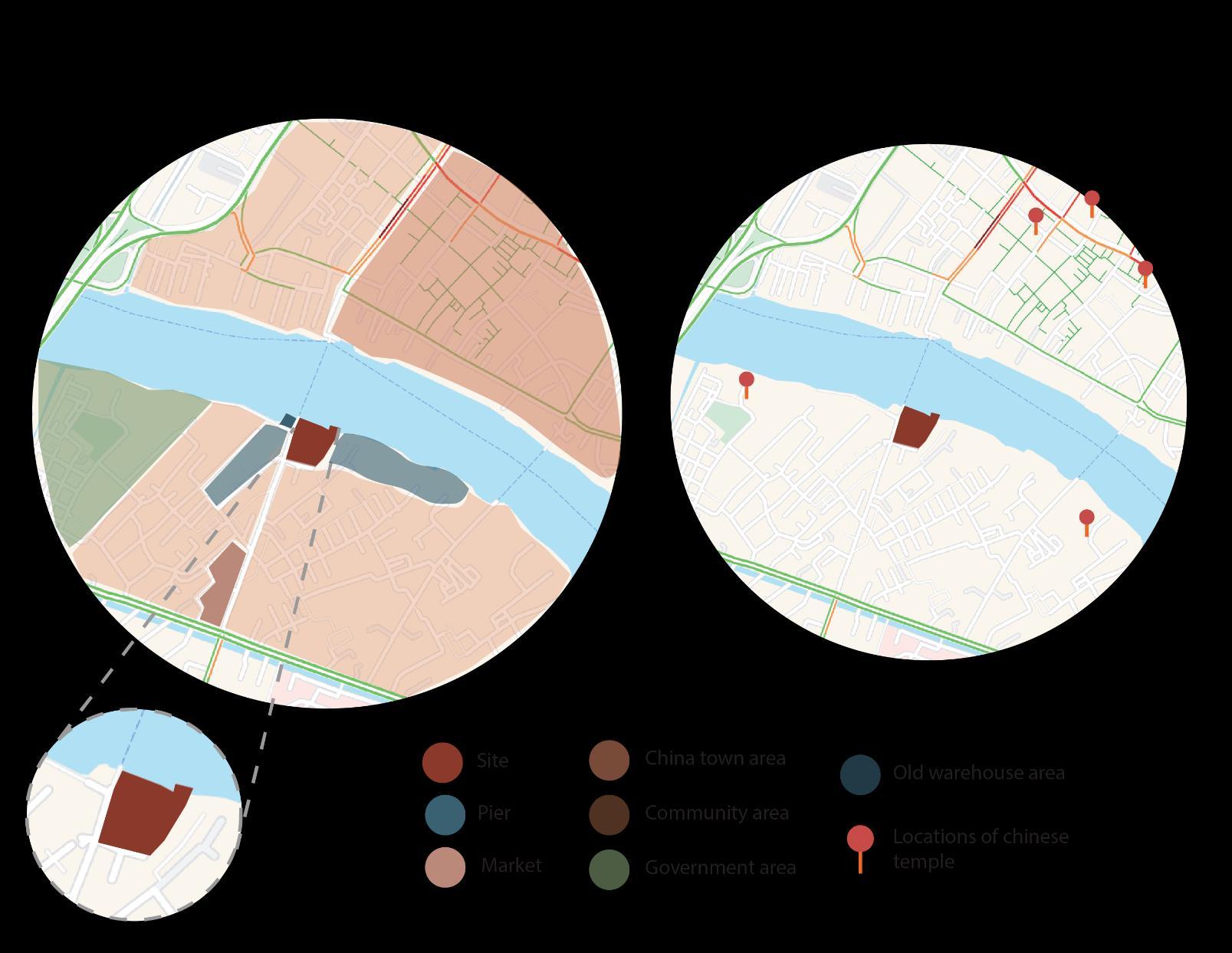 From site visit and analysis the surrounding area, the site is located in the community area, next to the main transportation by water and many temples and churchs are located nearby, which shows how the location is rich in culture and religious.