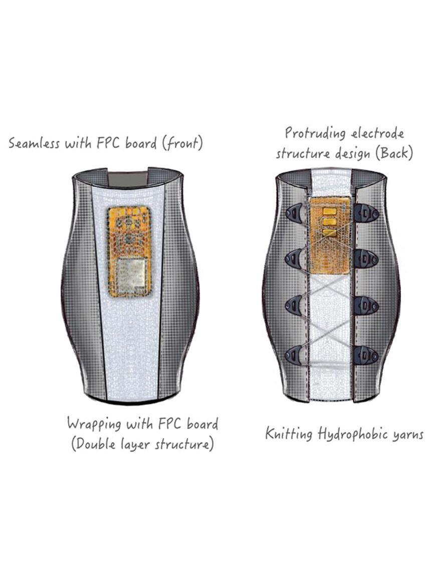 The project presents the design of novel flexible micro-structured electrodes that can simultaneously achieve flexibility to fit the curves of the body and provide efficient electrophysiological detection technology. Embedded EMG sensors are designed to create a high performance knitted wearable monitoring electrical signals generated by the dancers muscles. This enables accurate real-time movement data.