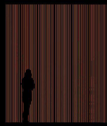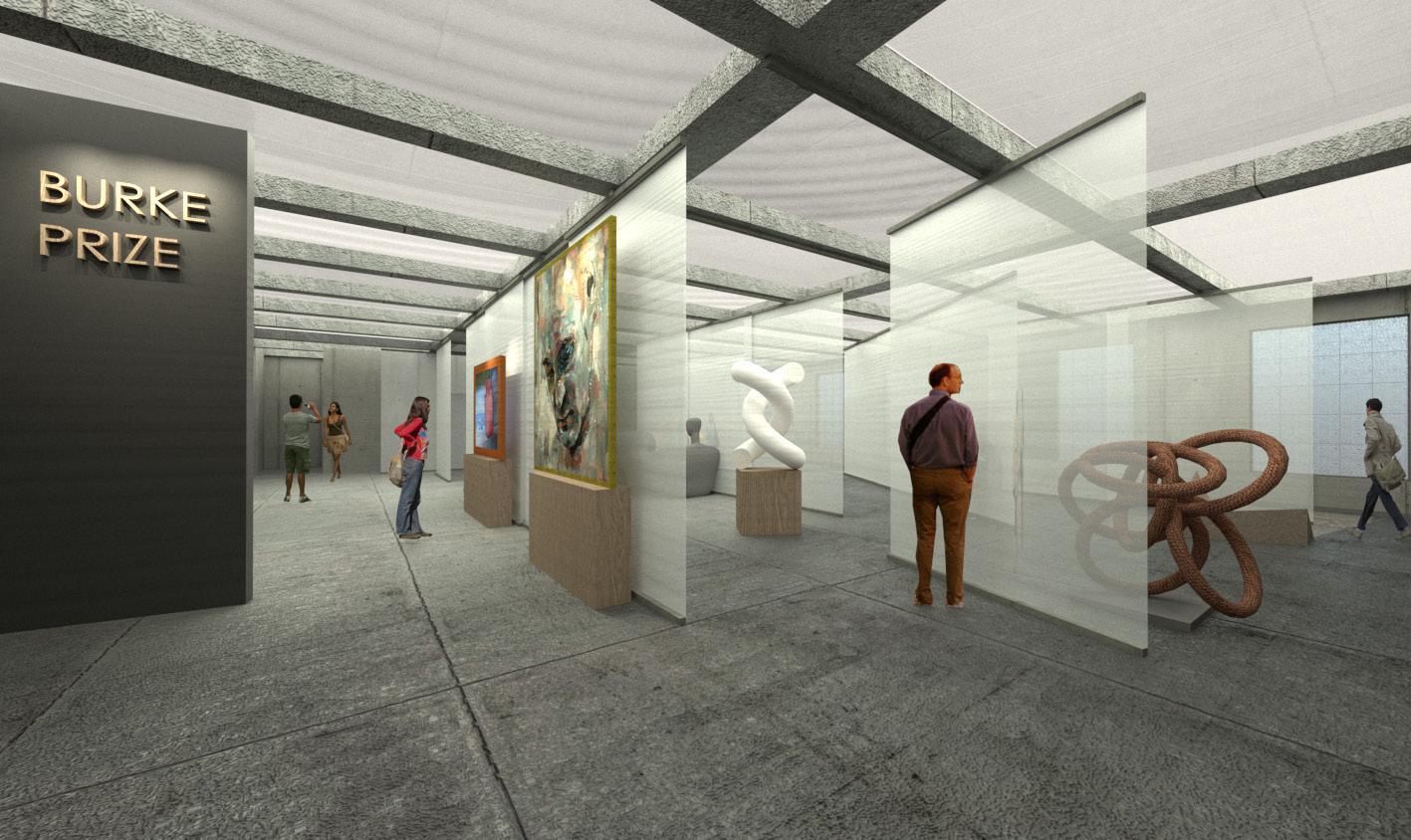 This panel system creates “frames” of different points of views of visitors moving through the space and becoming a part of the museum experience.
