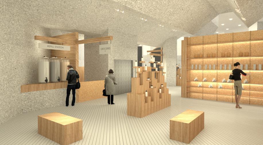 In order to be a part of a world that grows instead of diminishes, the best way to go about it is to extract the inside out. The premise of this project was to create a flagship store for the e-commerce brand, Public Goods. The aim of this retail space is to better understand how we can nurture nature. By introducing sustainable practices and carrying out eco-friendly activities, it will not only help us better deal with our surroundings but will also aid to bring out the wellness from within ourselves, which is the main concept of this store. The same biodegradable and environmentally friendly materials from the packaging that is used for the products have been integrated into the materials of which they are displayed on.