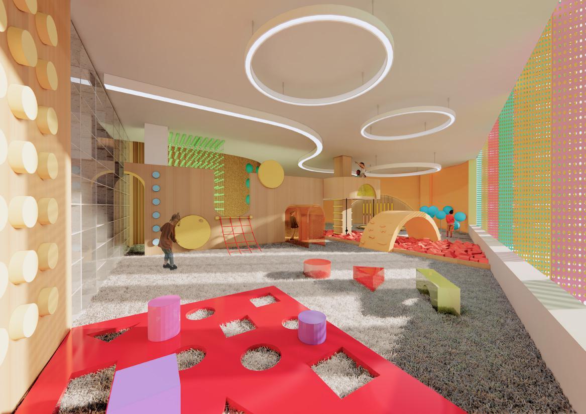 FIRST FLOOR PLAN PARENT-CHILD BONDING GAME ROOM ADMIN THEATER SUNKEN LIFT TOY STORAGE 4’-6” STORE OUTDOOR CONSULTATION/ GROUP THERAPY PLAYGROUND LEGEND OUTDOOR EXPOSURE CHILD ERGONOMICS COMPONENTS HANGING PODS CLOUD LIGHT HANGING LIGHTBULB TREEHOUSE SPECKLED LUXURY VINYL LUXURY VINYL WOOD TINTED RUBBER TILES