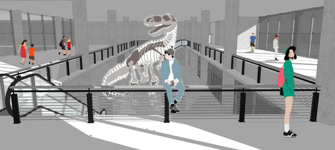 The concept for the Bangladesh Natural History Museum was to follow the process of preservation and conservation. I did this by keeping all the existing trees on the site and designed the museum surrounding it, as well as adding more vegetation. Visitors can enjoy this green space by walking along the designed pathways and take shelter underneath the custom shading devices, which were inspired by the trees on the site and were made to purposely blend in with the surrounding. The museum consists of four permanent galleries; Geology, Botany, Zoology, and the Anthropology gallery. The route of the museum is laid out according to the journey of time and development of nature starting and finishing in the same space. The loop starts from the Geology gallery and ends at the Anthropology gallery (from earth to man). The Bangladesh Natural History Museum was designed to mitigate the stereotypical idea of natural history museums and changing it into a place for people to prepare for the future with the help of the past.