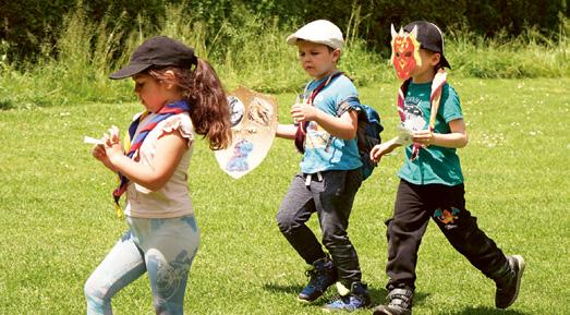 Nachdem die Biber beim Drachen Gottéron in Freiburg eingetroffen waren, mussten sie auch gleich alle mit anpacken. Denn die Zutaten für den Kuchen waren in der Umgebung verstreut. An einem Postenlauf sollten die Biber die Zutaten einsammeln. Nach verschiedenen Spielen, Challenges, Rätseln und einer Müllsammelaktion (als gute Tat!) war endlich alles für den Kuchen bereit.