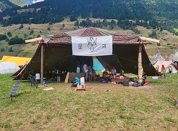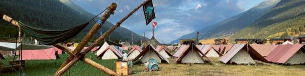 effet, nous étions au mova cet été, le plus grand camp scout jamais organisé en Suisse ! La construction du camp, de la taille d’une ville, a débuté le 2 juillet dans la vallée de Conches et a même reçu un propre NPA : 3990. Les premiers participant·e·s sont arrivé·e·s le 23 juillet et s’en sont suivis de nombreux jours rem plis d’aventures inoubliables. Comme un tel camp fédé ral n’a lieu que tous les 14 ans et constitue dès lors (hé las !) un événement rare, nous avons rempli ce numéro de SARASANI de souvenirs du CaFé.