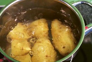 1 Cuire les pommes de terre : faire bouillir de l’eau dans une casserole et y faire cuire les pommes de terre jusqu’à ramollissement pendant environ 25 minutes.