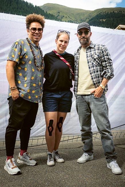 SARASANI-Reporterin Kerstin Fleisch / Cayenne mit BLAY: links ist Marc Sway, rechts Bligg.