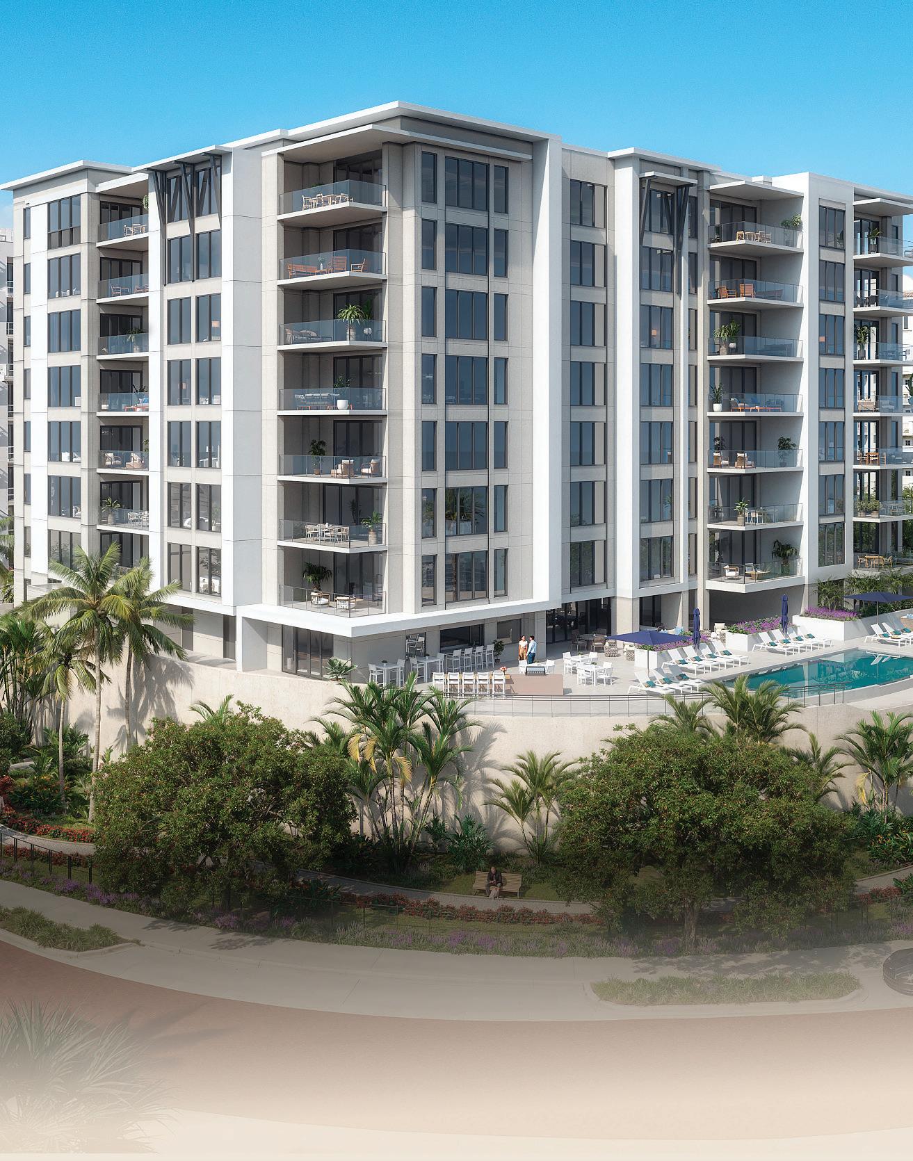Sarasota residences from 2,200 to over 3,000 SF with designer finishes and generous amenities between downtown and pristine beaches. From the high $2M’s