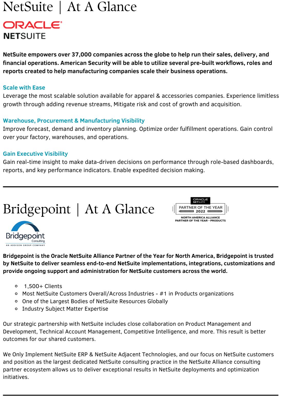 9:30-9:50AM Intros: AMSEC * NetSuite * Bridgepoint