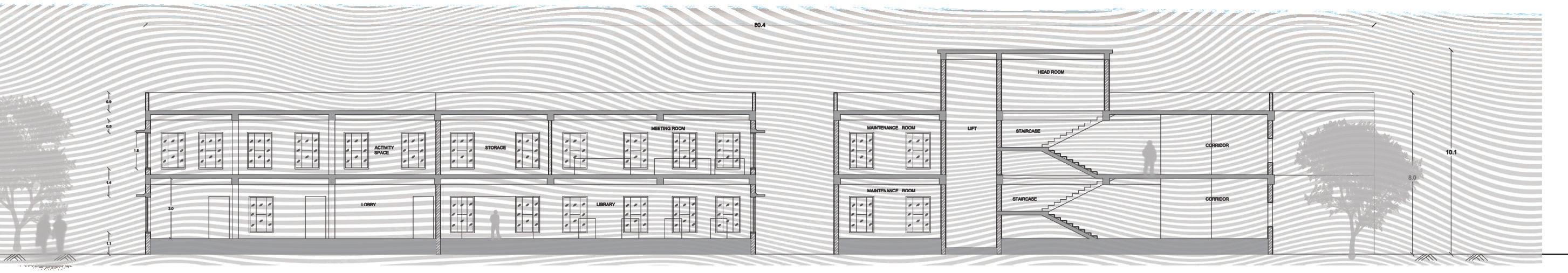 ACTIVITYSPACE CORRIDOR 2.7MWIDE MAINTENANCE ROOM ACTIVITYAREA CORRIDOR CORRIDOR MAINTENANCE ROOM TOILET TOILET LAB TOILET TOILET LAB STAFFROOM CLASSROOM STUDIO STORAGE MEETINGROOM A' A B B' 14.5MX14M6.5MX5.3M 9.8MX6.5M 6.7MX5.2M 6.7MX5.2M FIRSTFLOORPLAN ELEVATIONBB' 10 1 M 10 1 M CLASSROOM STUDIO TOILET LAB N CIRCULATION STAIRCASE TOILETS ACTIVITYSPACE CORRIDOR 2.7MWIDE MAINTENANCE ROOM ACTIVITYAREA CORRIDOR CORRIDOR MAINTENANCE ROOM TOILET TOILET LAB TOILET TOILET LAB STAFFROOM CLASSROOM STUDIO STORAGE MEETINGROOM A' A B B' 14.5MX14M6.5MX5.3M 9.8MX6.5M 6.7MX5.2M 6.7MX5.2M ELEVATIONAA' FIRSTFLOORPLAN 10 1 M 10 1 M CLASSROOM STUDIO TOILET LAB N CIRCULATION STAIRCASE TOILETS Westsideelevation Firstfloorplan 18 Academicblock-Plan&Elevation-Sportshub