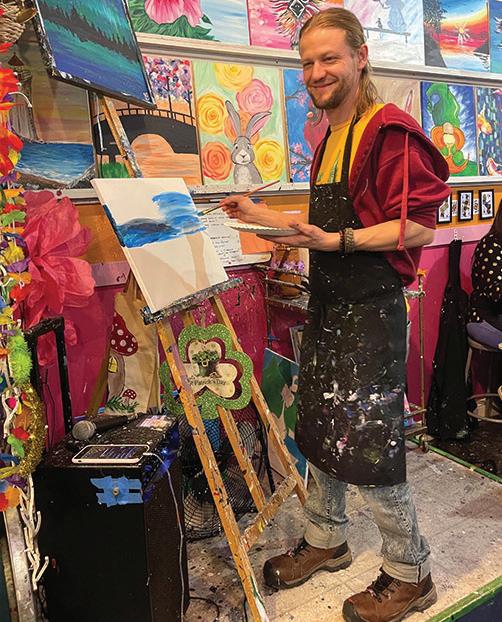Ryan Smithson brings a sober twist to the Paintand-Sip experience at Saratoga Paint & Drip Studio.