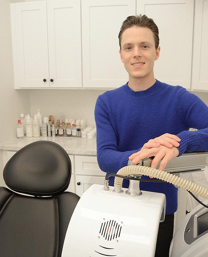 Kelly worked as a publicist after college but, he found, “I wasn’t passionate about it.” He signed up for the Christine Valmy School to train as an aesthetician. Subsequently, he undertook further education to become certified for laser, microneedle, and chemical peel treatments.