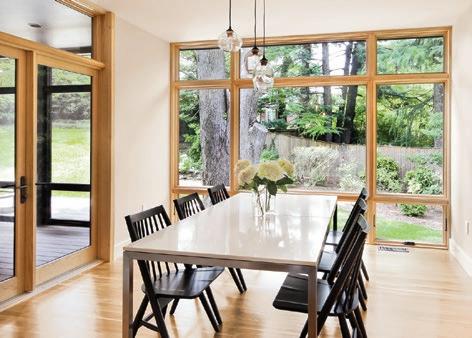 and complementary finishes for the project. The results were stellar: Using large floor-to-ceiling windows with narrow profiles along the back of the house created stunning, peaceful and inviting views of the backyard.