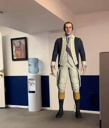 screenshot from the Saratoga 250 augmented reality preview app shows Benedict Arnold standing inside the Saratoga TODAY newsroom.