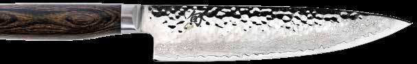 Speaking of the Steel (sharpener), all the other knives should be lightly honed (not aggressively sharpened) before each use. John recommends, “To do this properly, hold the steel upright on a firm, slip free surface. Align the beveled edge of the knife with the steel and pull back gently, alternating from side-to-side about four to six times.”