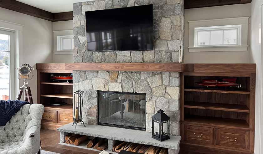 framework of the glass on either type of fireplace. Be sure the architectural details are synonymous with your homes’ style and metal finish for door hardware and lighting.