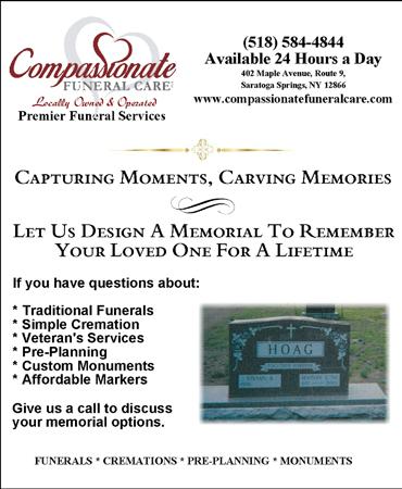 A Funeral Mass will be celebrated at 11:00 a.m. on Friday, January 23, 2026, at St. Clement’s Church, 231 Lake Avenue, Saratoga Springs. Online remembrances may be made at www. burkefuneralhome.com.
