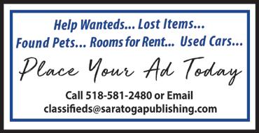 Ad Sales, Classifieds, Calendar, Obituaries 518-581-2480 x204 cdurfey@saratogapublishing.com