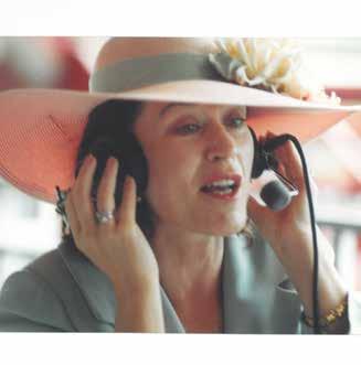 Fox Sports horse racing analyst Acacia Clement hosts the Belmont Draw Show at the Universal Preservation Hall in Saratoga Springs on Monday, June 3. Image via the New York Racing Association livestream of the event.