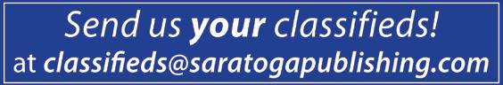 Ad Sales, Classifieds, Calendar, Obituaries 518-581-2480 x204 cdurfey@saratogapublishing.com