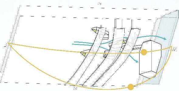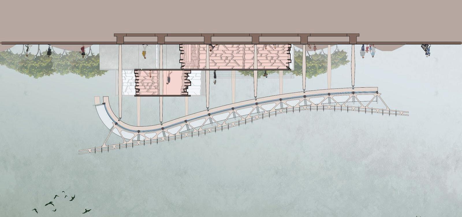 Basing our library framework off of the shapes of waves crashing into the historical wall, we wanted to incorporate the exact mathematical behind waves in nature in order to create an accurate design. Waves are pushed by wind into a trochoidal pattern. Once they get tall enough and the wind pushes it over, the crashing resembles the Fibonacci Curve. With a focus on celebrating the relationship between the Ligurian Sea and Genoaʼs historical city wall, we strived to combine and implement the two patterns.