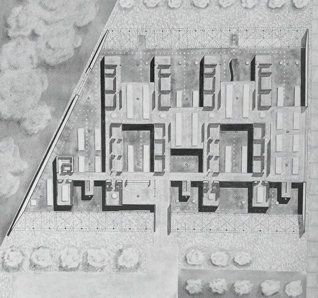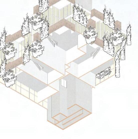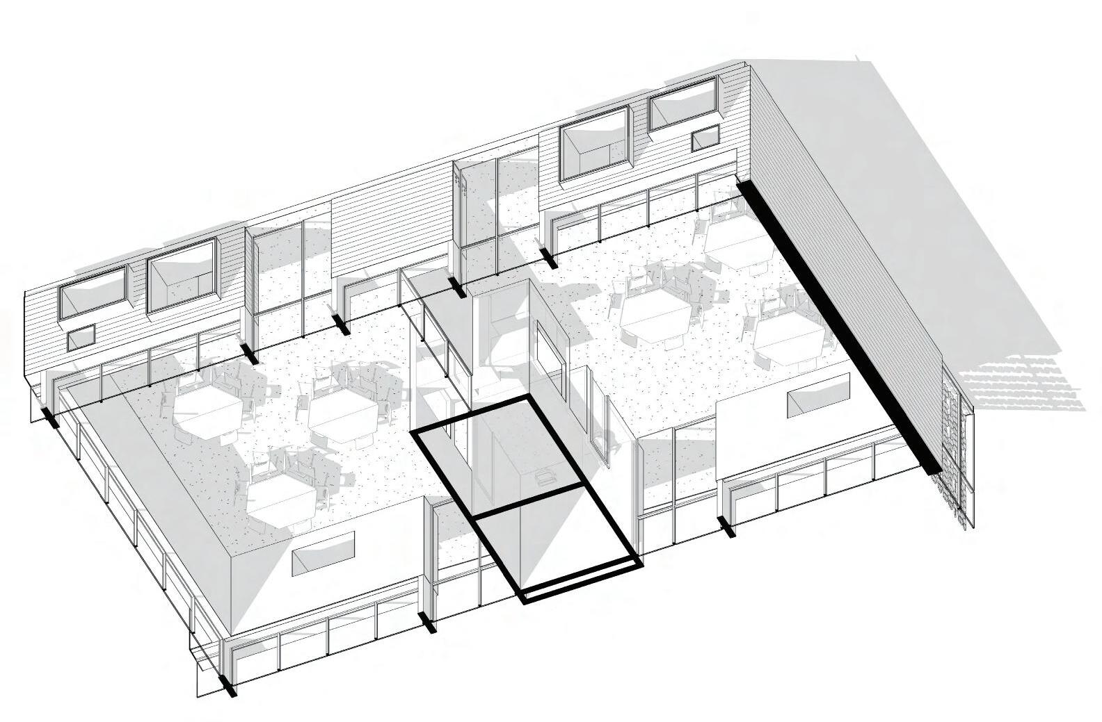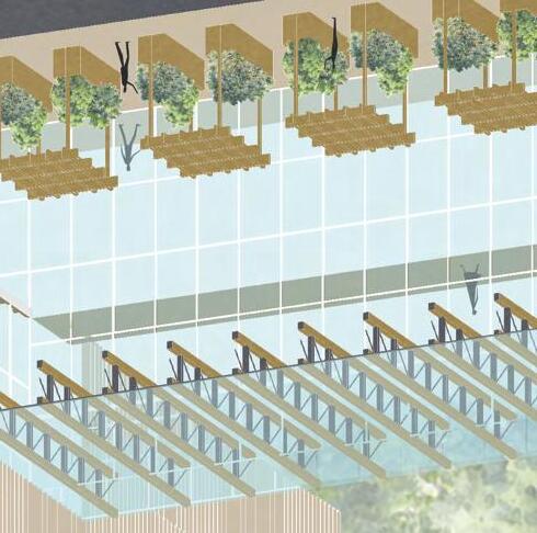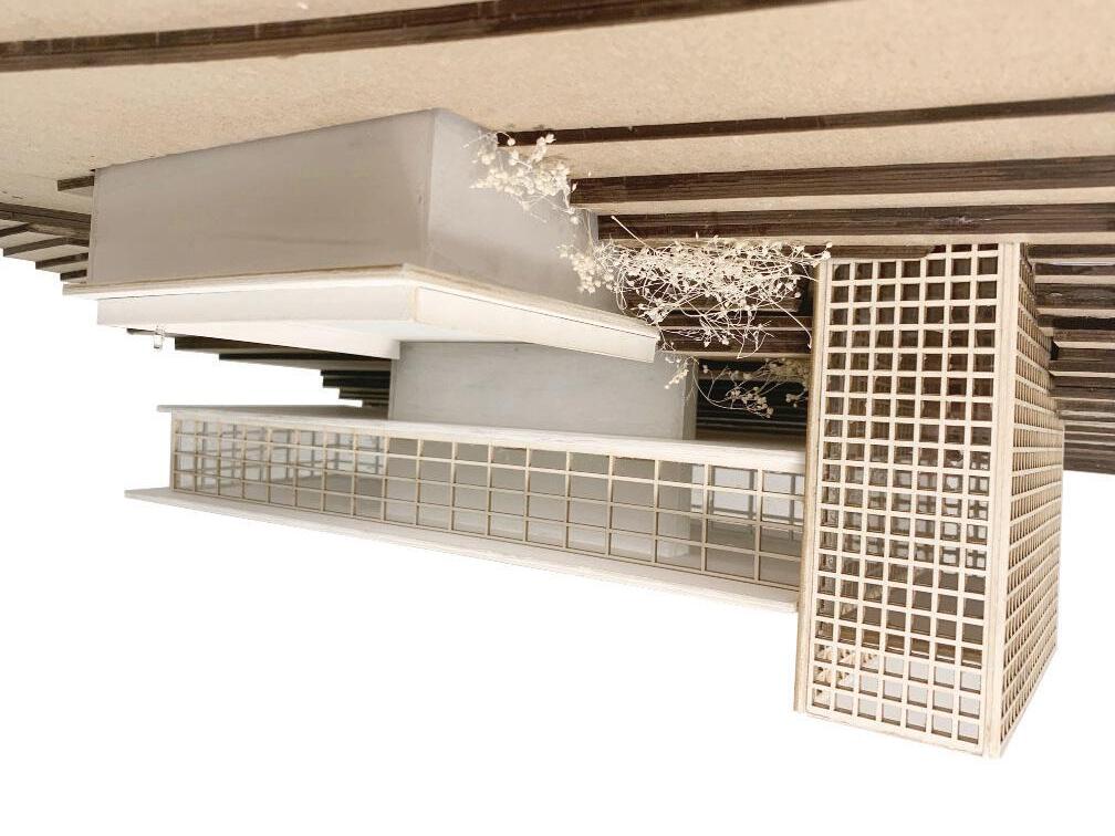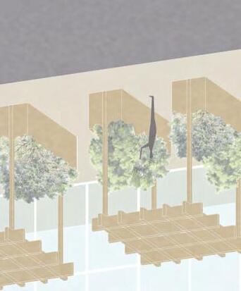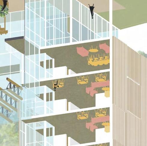 Rooted is a culinary institute that includes housing for students and restaurant space. By lifting the dormitory and educational building off the ground to allow for just the greenhouse to feel grounded. The connection between the two buildings and the greenhouse is so the restaurant overlooks the greenhouse and the customers can see where their food was grown.