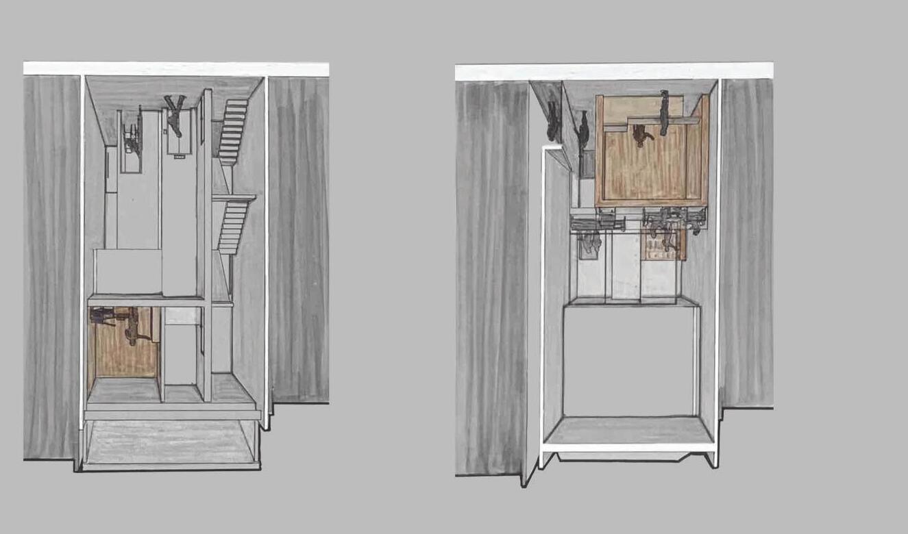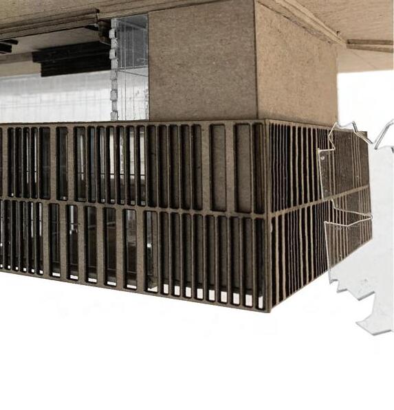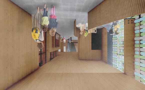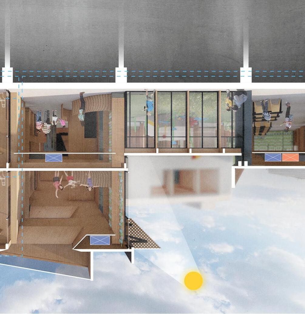 The structure consists of 5” x 27” columns that create depth in the walls. This depth allows for three prototypical wall infill types as seen above. One in particular is the window seat infill. The window seat creates an interactive opportunity for the children at the development center by allowing them to sit inside the wall, and even feel like theyʼre outside the building. These nooks create a safe haven for anyone needing a moment to themselves.