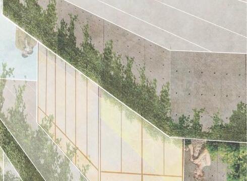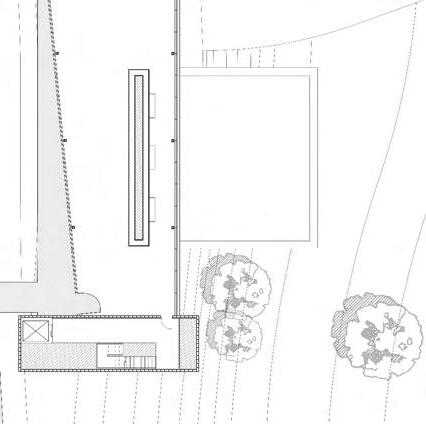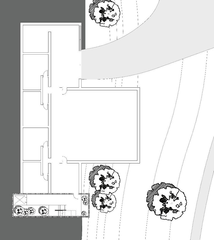 Located in south campus at Clemson University, Sacred Grounds provides a quiet escape for students and faculty alike. Embedding the structure into the hillside brings forth a sense of grounding. The two major elements intersecting explore the relationship between social and sacred space. Approaching from the north, the sacred space cannot be seen, but in reality the two are interconnected.